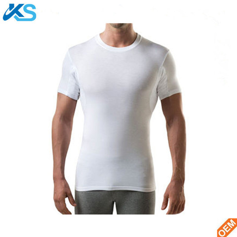 Camiseta de Modal/spandex blanca Lisa para hombre, envío rápido, camiseta interior a prueba de sudor con cuello redondo y almohadillas para el sudor en las axilas